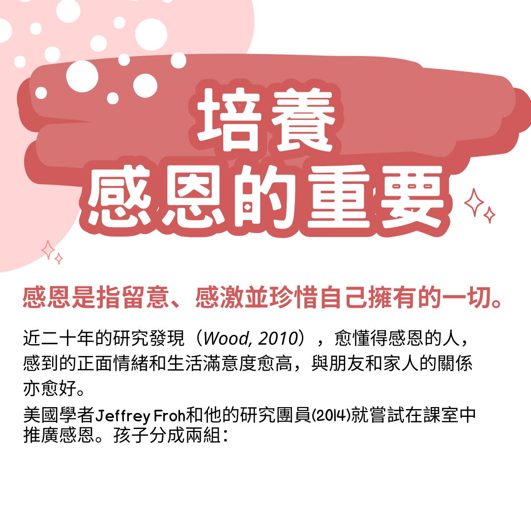 最新消息親職管教 養感恩的重要❤️ 感恩是指留意、感激並珍惜自己擁有的一切。 以身作則 – 家長們應以身作則,經常說「多謝」,回饋別人 […] By admin 2023-12-072023-12-07