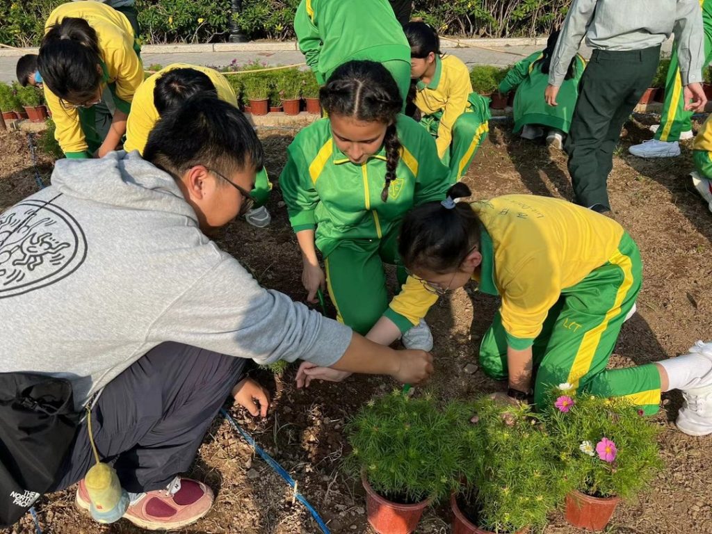 學生們用心地澆水、鋪設土壤, 並小心照顧自己負責的花卉 🌿🌼. 學生們互相合作, 分享種植的心得和技巧 🤝🏻🌱。這樣的合作不僅增強了團隊合作的能力, 也讓學生們更加關注環境保護和植物的生長 。