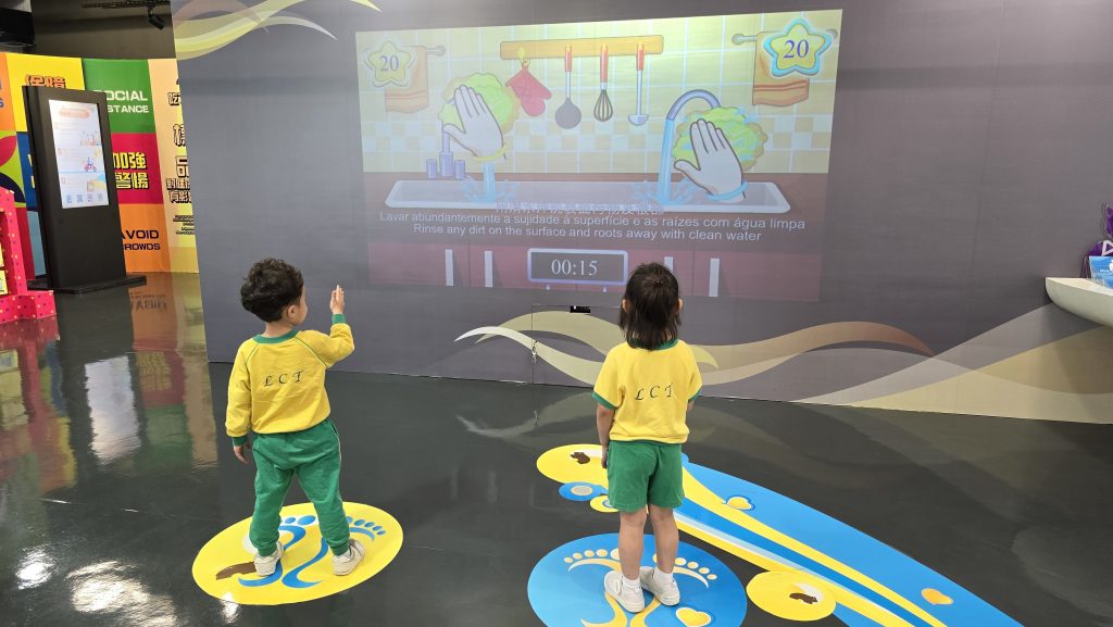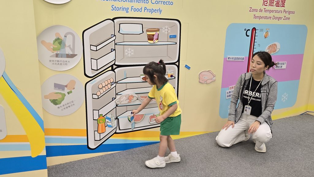 活動中,職員利用冰箱模型生動地向學生們講解了食物應該如何正確擺放,例如熟食與生食的分隔、不同食物的適宜溫度等,幫助同學們了解如何延長食物的保鮮期,保持食物衛生。學生們還通過農場和牛隻模型,清楚地了解到我們日常飲用的牛奶是如何從農場到達我們的餐桌的,也更加珍惜每一份食物的來之不易。最後是體感遊戲環節,透過趣味遊戲,學生們學習了如何安全處理食物,例如清洗、烹調和儲存等,寓教於樂的方式讓大家在輕鬆的氛圍中掌握了重要的食品安全知識!