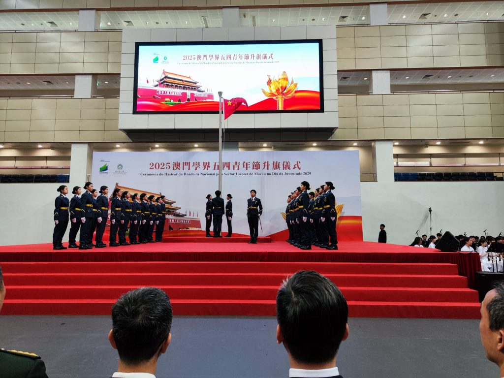 主題活動最新消息校園動態 氹仔中葡學校師生出席五四青年節升旗儀式 By admin 2025-05-272025-05-27 0 minutes, 0 seconds Read 為弘揚五四精神、厚植家國情懷,氹仔中葡學校師生於5月4日參與「2025澳門學界五四青年節升旗儀式」。活動由教育及青年發展局主辦。 升旗儀式上,由學界組成的升旗隊步操至升旗台,在國歌奏起時升起國旗,現場眾人肅立並向國旗行注目禮。 多所學校代表共同見證莊嚴的升旗儀式。
