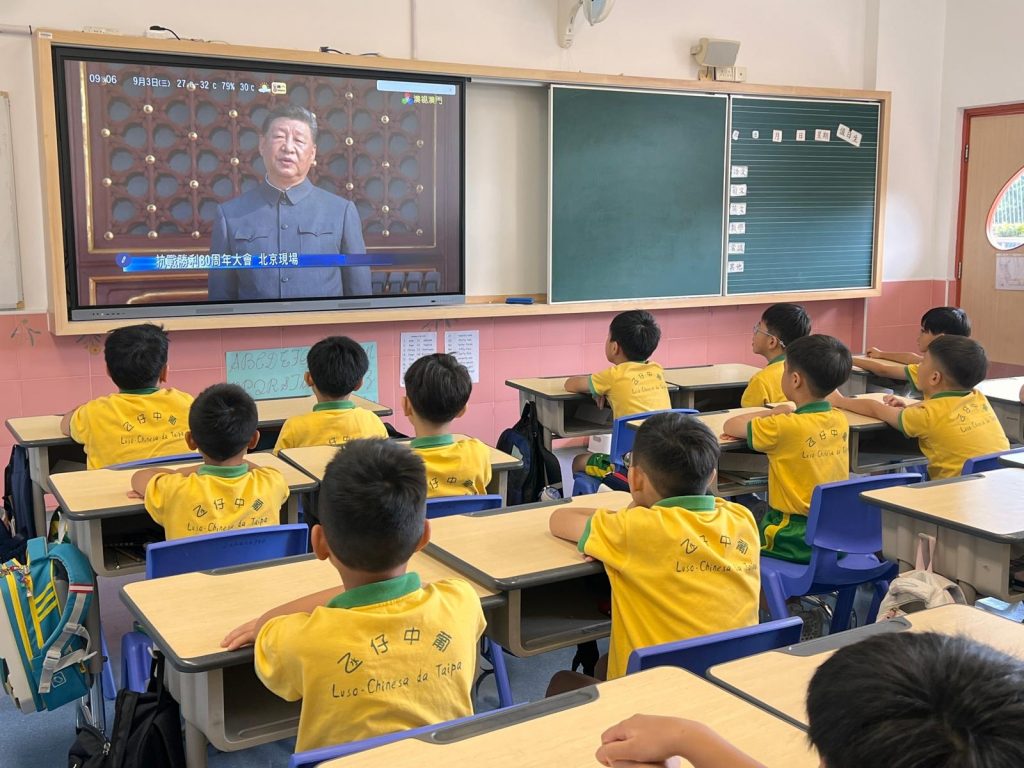 校園動態 氹仔中葡學校師生觀看抗戰勝利80周年閱兵儀式 By admin 2025-10-312026-02-24 0 minutes, 0 seconds Read 2025年9月3日是中國人民抗日戰爭暨世界反法西斯戰爭勝利80周年,本校組織全校師生共同觀看在北京天安門廣場,舉行的大型紀念活動直播,當中由國家主席習近平檢閱的閱兵儀式特別令學生們着迷,同學們嚴肅的態度觀看直播中,銘記抗戰歷史,珍惜現在和平安定的日子。